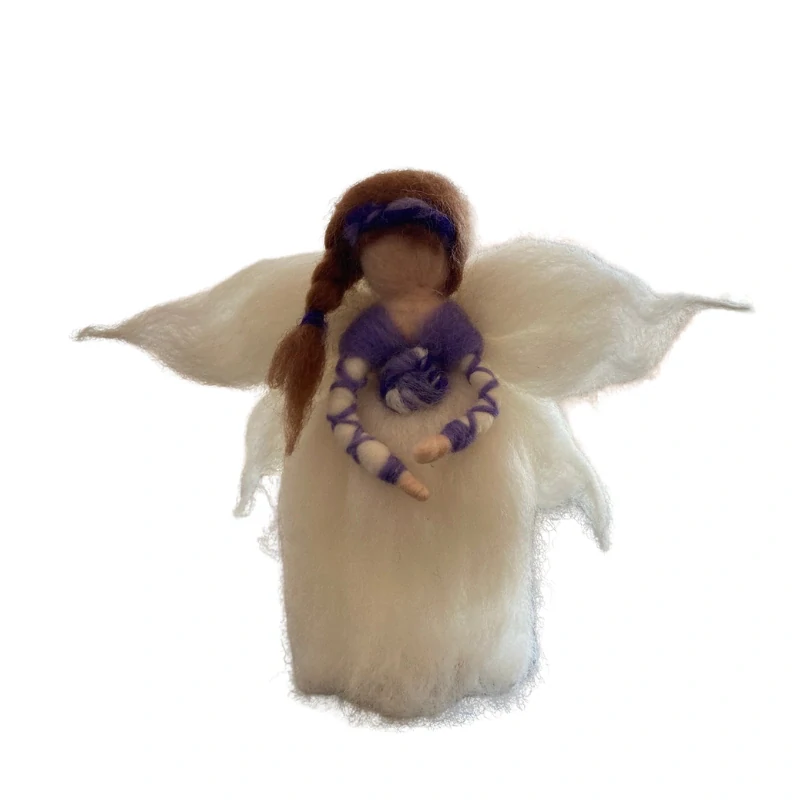 Tato něžná plstěná andělka je vytvořená tradiční technikou suchého plstění jehlou, při které se ovčí vlna postupně zpevňuje a tvaruje pomocí speciální jehly s mikroháčky. Každý kus vzniká ručně, bez forem a strojů, takže je naprostý originál.