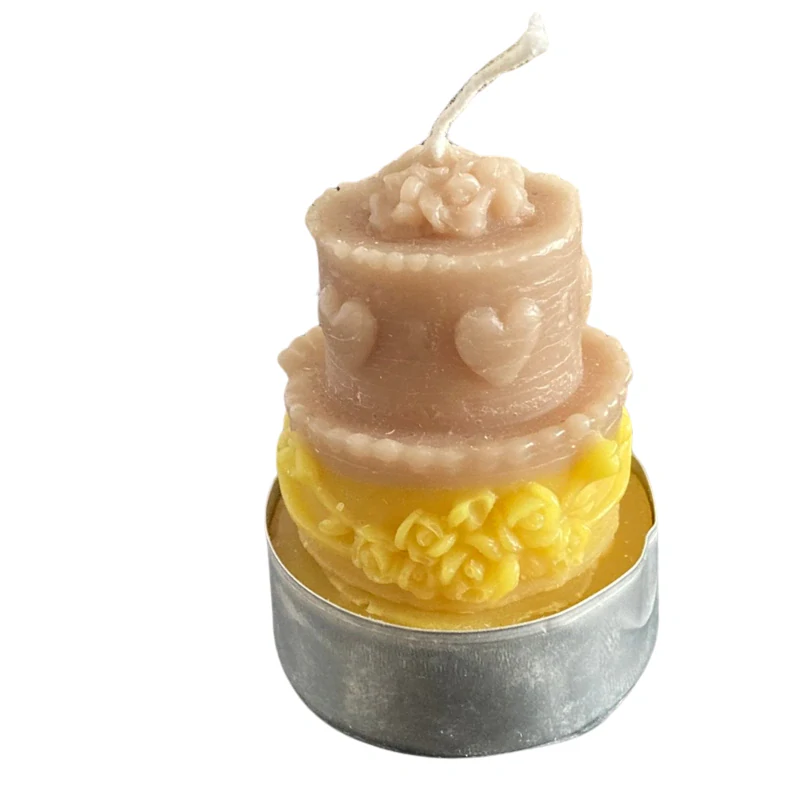 Čajová svíčka Dort je hravá a elegantní dekorativní svíčka, která potěší milovníky sladkých motivů i jemných detailů. Je odlitá do tvaru malého dortíku s ozdobami a umístěná v kovovém čajovém kalíšku, takže je stabilní a připravená k okamžitému použití.