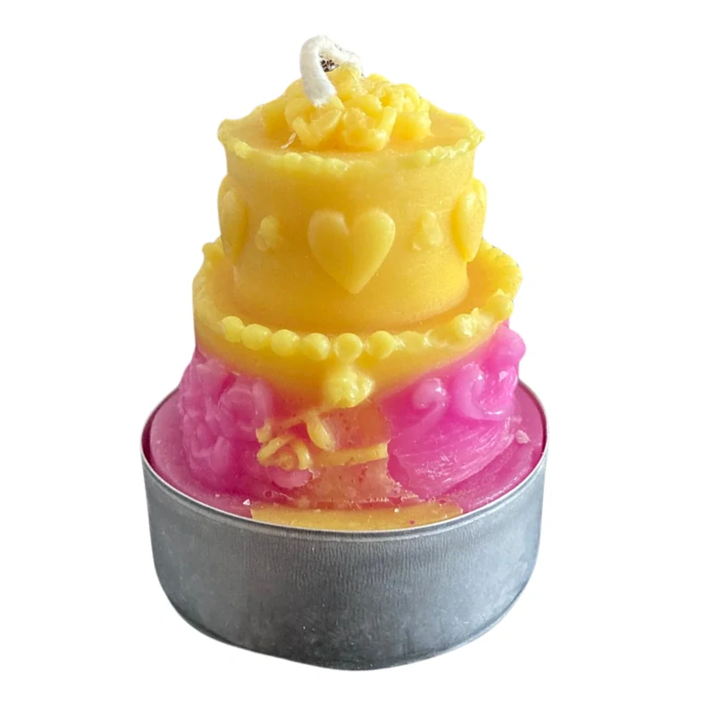 Čajová svíčka - dort - žlutorůžovýskladem 3 ks45 Kč/ ks