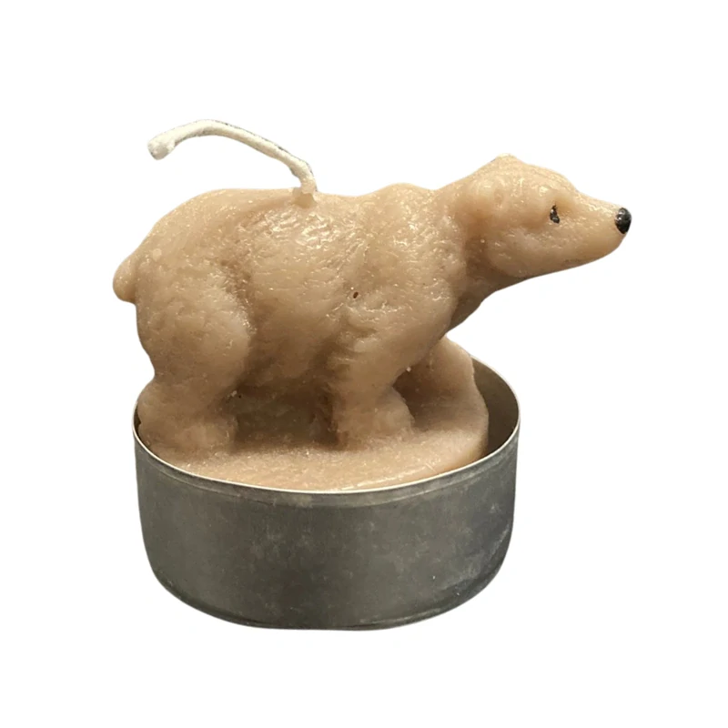 Čajová svíčka Medvěd je roztomilá dekorativní svíčka, která potěší děti i dospělé. Svíčka je zasazená v recyklovaném kovovém kalíšku, který pochází z již použitých čajových svíček — tím šetříme životní prostředí a dáváme materiálu druhou šanci.
