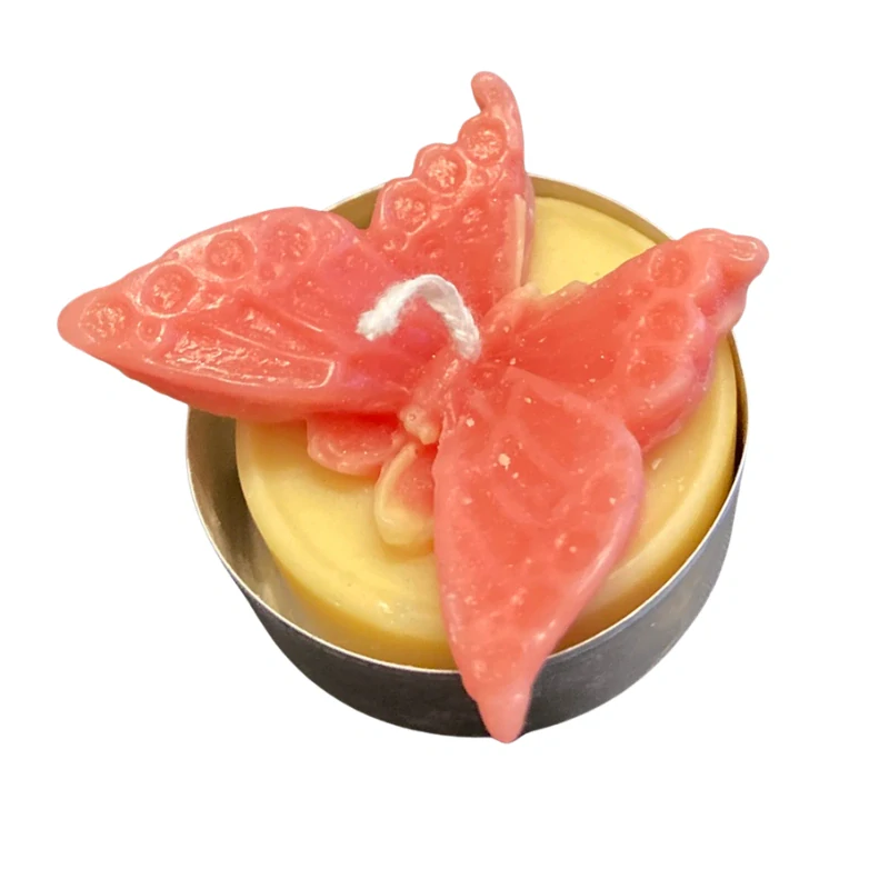 Čajová svíčka Motýl je jemná a hravá dekorativní svíčka, která potěší děti i dospělé. Je odlitá do detailního tvaru motýla a umístěná v kovovém kalíšku, takže je stabilní a připravená k okamžitému použití.