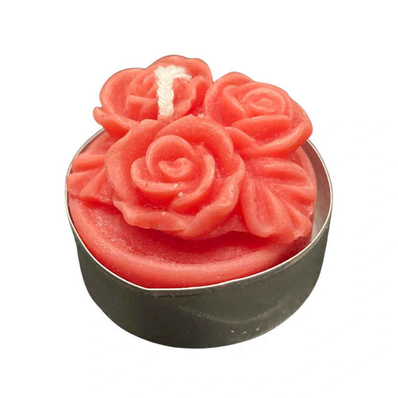 Čajová svíčka Tři růžičky je jemná dekorativní svíčka, která potěší milovníky romantických, jarních i elegantních motivů. Je odlitá do tvaru tří drobných růžiček.