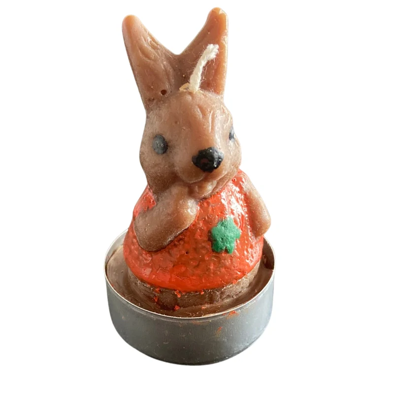 Tato čajová svíčka s motivem zaječice Beátky je veselým doplňkem jarní a velikonoční výzdoby. Je vyrobená z kvalitního parafínu a má výšku 7 cm, což odpovídá klasické velikosti figurkové čajové svíčky.
