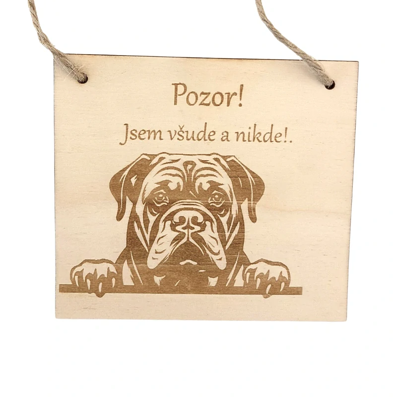 Cedulka s textem „Pozor! Jsem všude a nikde!“ vystihuje jeho povahu s humorem a lehkou nadsázkou. Rotvajler je totiž pes, který má přehled o všem, co se doma šustne — a tahle cedulka to říká s úsměvem i špetkou psí sebejistoty.