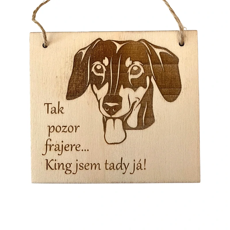 Cedulka s textem „Tak pozor frajere… King jsem tady já!“ dokonale vystihuje jeho povahu — malý král domácnosti, který přesně ví, jak si získat respekt i úsměv každého návštěvníka.