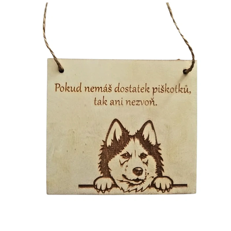 Tahle cedulka je ideální pro všechny, kdo doma mají huskyho, který bere piškotky jako životní motivaci. Text „Pokud nemáš dostatek piškotků, tak ani nezvoň.“ vystihuje jeho hravost, drzost i typický smysl pro humor.