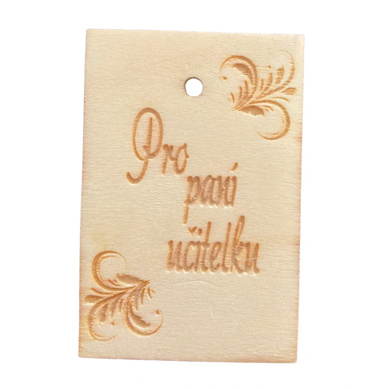 Tato drobná cedulka z překližky je perfektním doplňkem k dárkům všeho druhu. Slouží jako malá, ale výrazná dekorace, která dodá balíčku osobitost a půvab — přesně ta třešnička na dortu, která udělá radost už na první pohled.