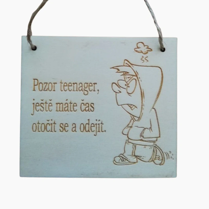Teenageři jsou malý přírodní úkaz — směs emocí, chaosu, zavřených dveří a dramat, která se mění rychleji než počasí. Tahle cedulka to vystihuje s nadsázkou a pobaví každého, kdo má doma puberťáka… nebo se k němu chystá vstoupit.