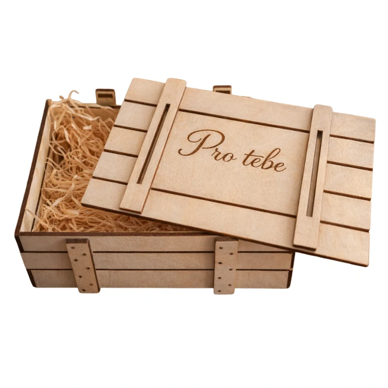 Nízká dárková krabička je vyrobená z kvalitní překližky, která díky laserovému řezání působí čistě, elegantně a precizně. Je pevná, lehká a ideální pro balení drobných dárků, svíček, kosmetiky, sladkostí nebo malých dekorací.