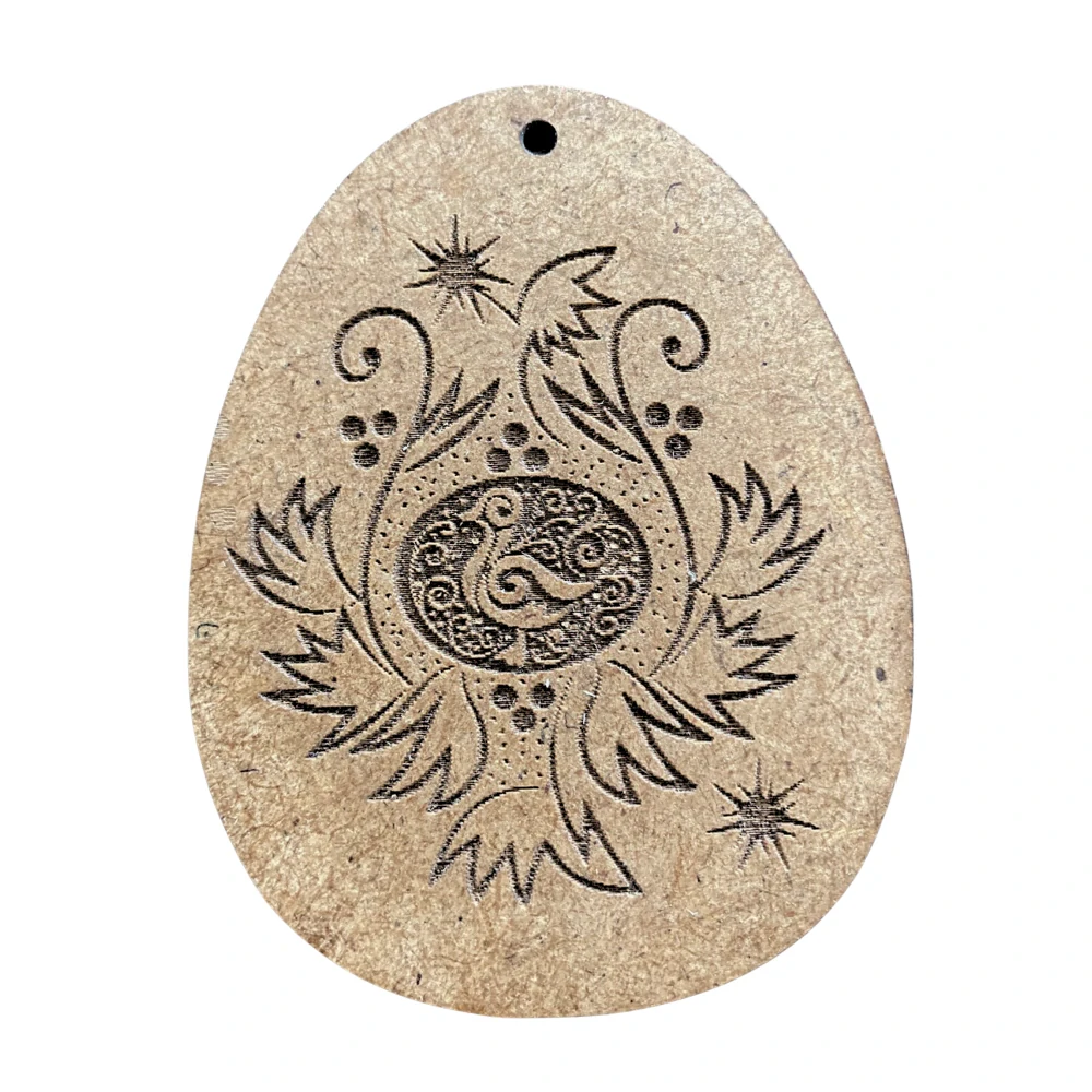 Tato gravírovaná kraslice z MDF je krásným doplňkem jarní a velikonoční výzdoby. Má velikost 7 cm a je zdobená gravírováním, které dodává dekoraci jemný a elegantní vzhled. V horní části je dírka na zavěšení, takže ji můžeš snadno umístit na větvičky, do okna, na věnec nebo jako doplněk k dalším dekoracím.