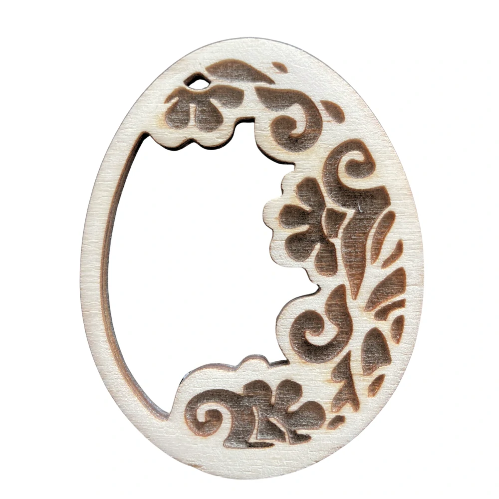 Tato laserem vyřezávaná kraslice z překližky je elegantní dekorací pro jarní a velikonoční výzdobu. Má velikost 7 cm a díky jemnému laserovému výřezu působí vzdušně, čistě a velmi dekorativně. V horní části je dírka na zavěšení, takže ji můžeš snadno umístit na větvičky, do okna, na věnec nebo jako doplněk k dalším dekoracím.