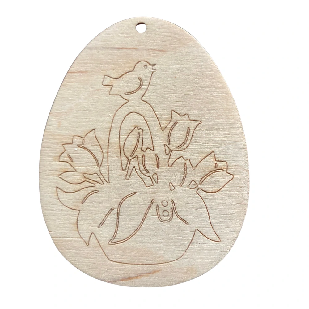 Tato kraslice z překližky je ideální pro jarní tvoření i velikonoční výzdobu. Má velikost 7 cm a je zdobená obrysem obrázku, který je připravený k vymalování. V horní části je dírka na zavěšení, takže ji můžeš snadno umístit na větvičky, do okna, na věnec nebo ji použít jako kreativní dekoraci pro děti i dospělé.