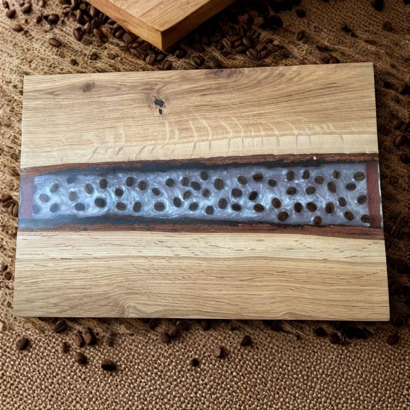 Podnos, který ukrývá hloubku a aroma světa kávy v kombinaci s přírodním dubem. Kávová zrna jsou jemně usazená v perleťově bílém epoxidu a zalitá průhlednou vrstvou pro zdůraznění jejich struktury a detailů. Hnědé odstíny dřeva a kávových zrn přinášejí do každého prostoru pocit útulnosti a tepla, připomínající domácí rituály spojené s vůní a chutí kávy. Každý kus je ručně vyrobený s láskou k detailu, aby vytvořil jedinečný a inspirativní svátek pro oko i duši.