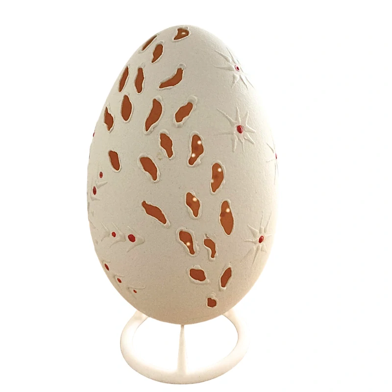 Každá kraslice je nejprve ručně vrtaná, aby vznikly jemné madeirové otvory. Následně je skořápka dezinfikovaná, což zajišťuje bezpečnost a čistotu při dalším zpracování i při dlouhodobém uchování. Poté následuje finální fáze zdobení — tradiční vosková technika, která dodává kraslici nádherný, plastický a originální vzhled. Každý kus je jedinečný a nese otisk ruční práce.
