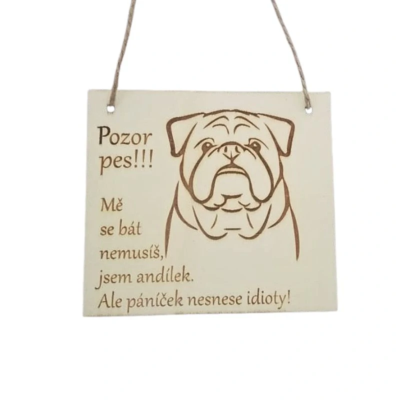 Buldok je chodící kombinace bručouna, komika a profesionálního spáče. Tvrdí, že nic neudělal, ale jeho výraz říká „možná jsem něco převrátil… ale s láskou“. Tahle cedulka je ideální pro všechny, kdo doma mají tohle roztomilé, funící klubíčko osobnosti.