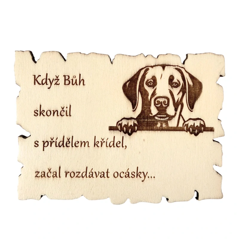 Labradorský retrívr je symbolem laskavosti, věrnosti a radosti. Je to pes, který dokáže rozveselit každý den — a přesně to vystihuje i tahle magnetka. Kombinace jemného gravírování, krásného psího motivu a citlivého textu vytváří dekoraci, která potěší každého pejskaře.