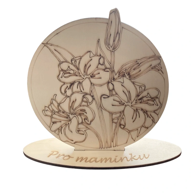 Dřevěná dekorace Malá lilie je jemný a elegantní doplněk, který krásně ozdobí polici, komodu, pracovní stůl nebo dětský pokoj. Motiv lilie je vyřezaný z kvalitní překližky a díky detailnímu zpracování působí čistě, něžně a dekorativně.