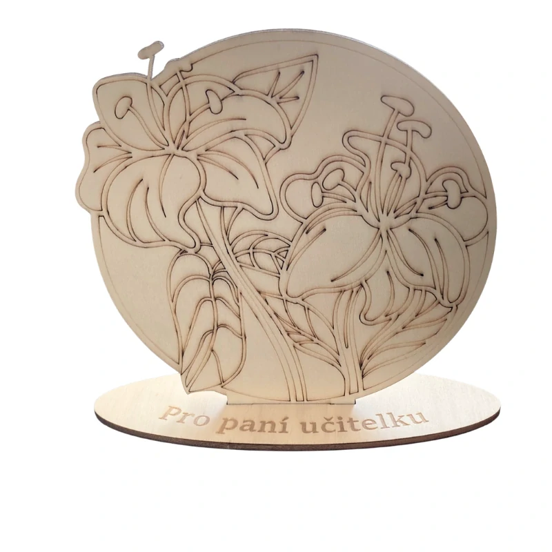 Dřevěná dekorace Lilie velká je elegantní, výrazná a nadčasová ozdoba, která krásně doplní interiér — od obývacího pokoje až po pracovní stůl nebo dětský pokoj. Motiv lilie je vyřezaný z kvalitní překližky a díky detailnímu zpracování působí jemně, čistě a dekorativně.