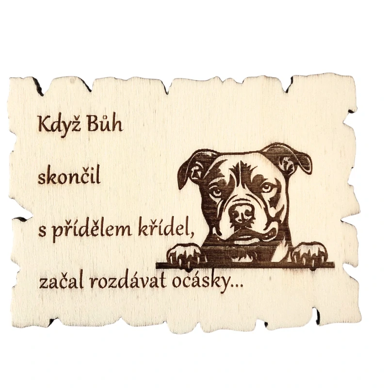 Americký staford je pes s obrovským srdcem, sebevědomým výrazem a neochvějnou oddaností své rodině. Přestože působí silně a robustně, je to plemeno plné lásky, radosti a přátelské povahy. Tato magnetka zachycuje jeho typický výraz a doplňuje ho citlivý text, který připomíná, jak výjimeční psi jsou.