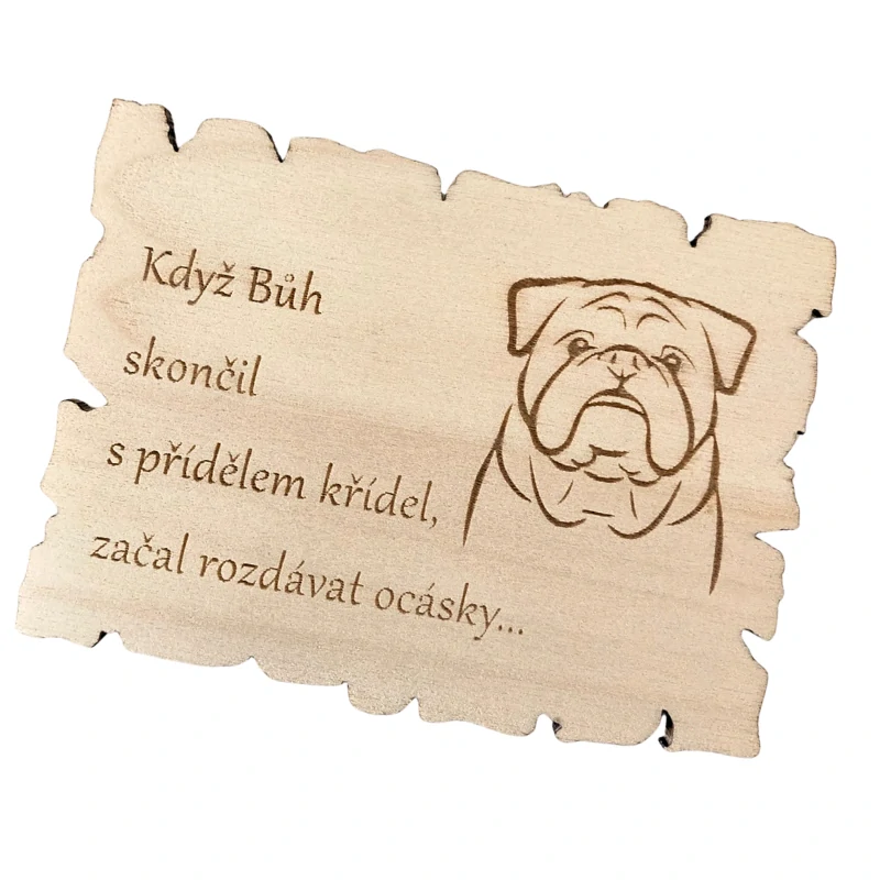 Buldok je pes s nezaměnitelným vzhledem, dobráckým výrazem a obrovským srdcem. Je to plemeno, které působí robustně, ale uvnitř je plné něhy, oddanosti a humoru. Tato magnetka zachycuje jeho typický výraz a doplňuje ho citlivý text, který připomíná, jak výjimeční psi jsou.