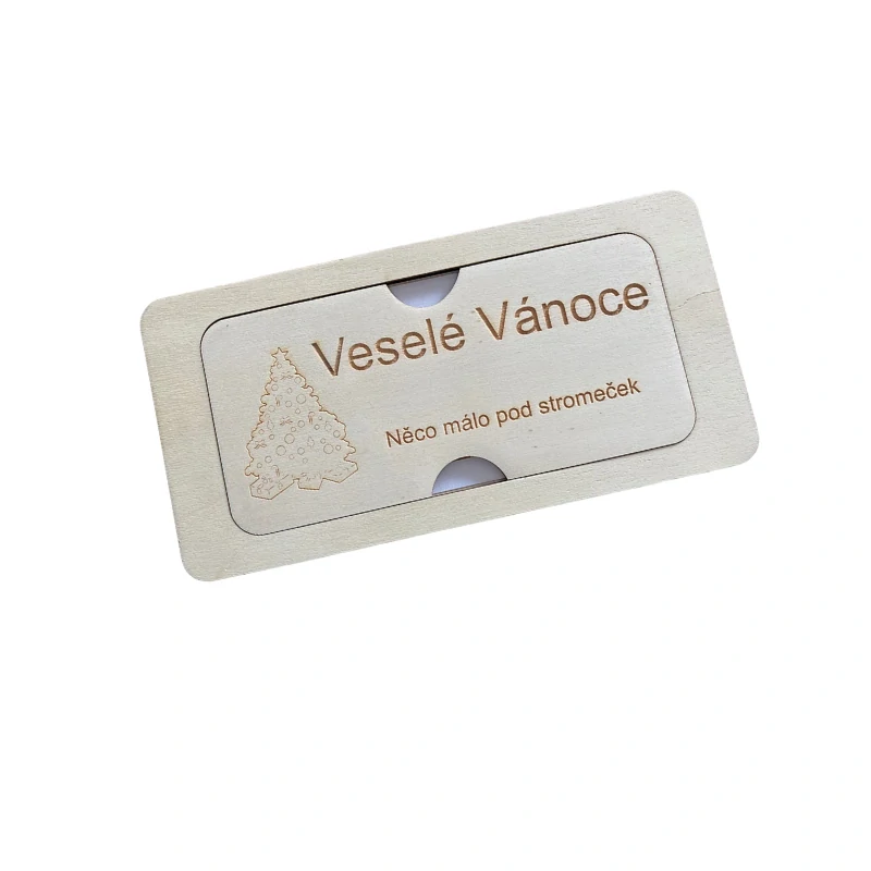 Tato vánoční dřevěná obálka na peníze je krásný a originální způsob, jak darovat finanční dárek pod stromeček. Obálka má velikost 20 × 10 cm, takže se do ní pohodlně vejdou bankovky i malé přání.