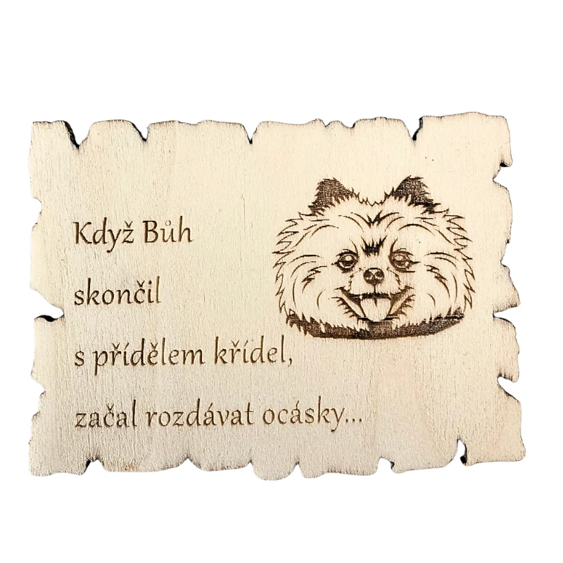 Pomeranian je malý pes s obrovskou osobností. Je to chlupatá kulička radosti, která dokáže rozveselit každý den svým úsměvem, vrtěním ocásku a nekonečnou energií. Tahle magnetka zachycuje jeho typický výraz — veselý, nadšený a neodolatelně roztomilý.