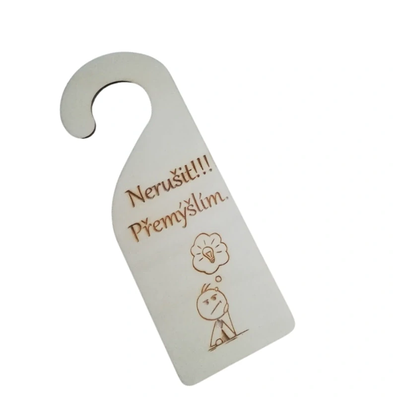 Vyrobená z kvalitní překližky, lehká, odolná a s precizním laserovým gravírováním. Rozměr 19 × 7 cm zajišťuje dobrou viditelnost a snadné zavěšení na jakoukoli kliku — v kanceláři, domácí pracovně i studentském pokoji.