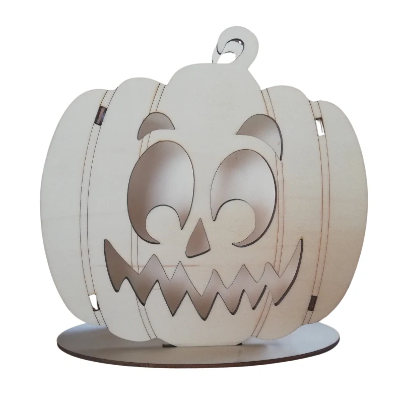 Nemáte čas dlabat dýni a přece byste chtěli mít světelnou dekoraci? Tak tato dýně je právě pro Vás. Dýně je vyrobena z překližky a je osazena LED osvětlením. Můžete si ji zavěsit například na dveře, protože je pouze 4cm široká nebo postavit na stůl. Velikost 20 cm x 20 cm. Dekorace nesmí být v konta... celý popis