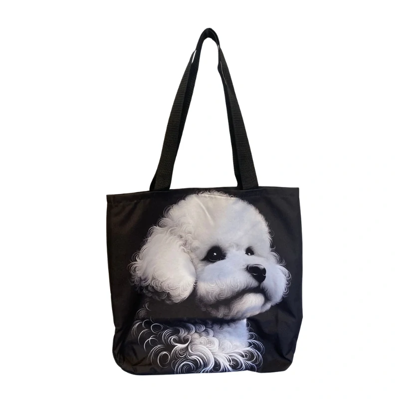 Taška je ušitá z kvalitní černé kočárkoviny, která je pevná, odolná a drží tvar. Velikost 42 × 42 cm poskytuje dostatek prostoru na nákup, věci do práce nebo výbavu na psí výlety. Dvě pevná ucha umožňují pohodlné nošení na rameni i v ruce. Motiv bišonka je vytištěn tak, aby působil jemně, roztomile a s typickou nadýchanou elegancí — přesně jako samotné plemeno.