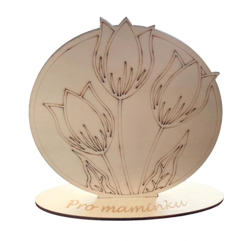 Dřevěná dekorace Tulipány je něžný, veselý a univerzální doplněk, který krásně ozdobí polici, komodu, pracovní stůl nebo dětský pokoj. Motiv tří tulipánů je vyřezaný z kvalitní překližky a díky detailnímu zpracování působí čistě, elegantně a přírodně.