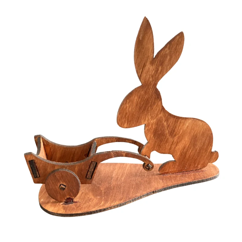 Tento namořený velikonoční trakař se zajíčkem z překližky je krásným doplňkem jarní a velikonoční výzdoby. Je navržený tak, aby do něj bylo možné vložit jednu kraslici nebo čokoládové vajíčko, takže se skvěle hodí jako dekorace na stůl, poličku nebo součást většího aranžmá. Díky velikosti 14,5 cm působí jemně, ale zároveň dostatečně výrazně, aby zaujal na první pohled.