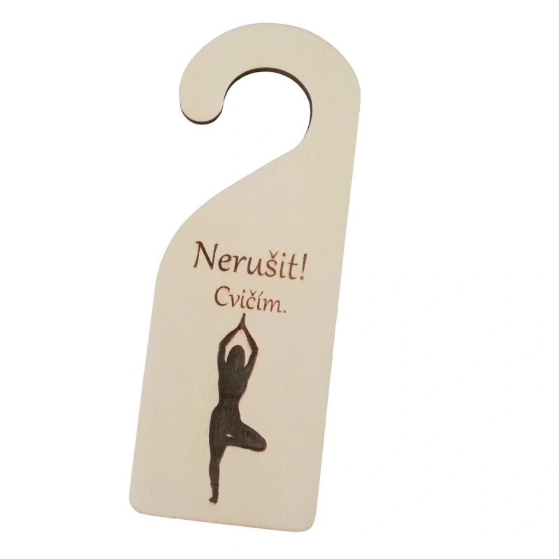 Visačka „Nerušit! Cvičím.“ je ideální pro všechny, kteří si chtějí dopřát klid na jógu, meditaci nebo domácí trénink. Gravírovaný motiv postavičky v jógové pozici stromu dodává cedulce harmonii, lehkost a příjemnou atmosféru, která dokonale vystihuje moment soustředění.