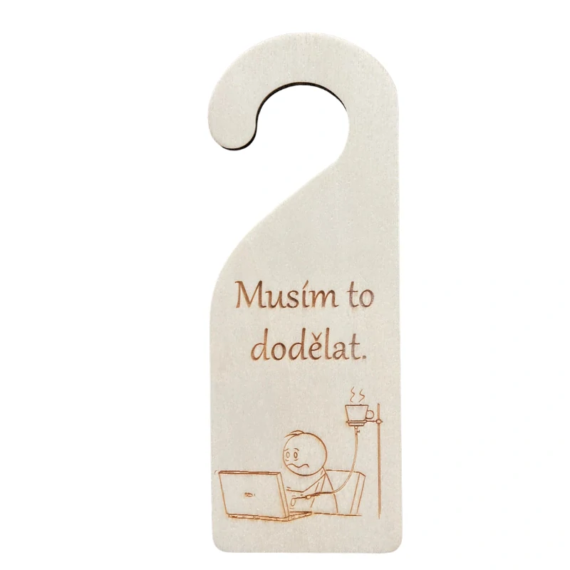 Visačka „Musím to dodělat.“ je ideální pro všechny, kteří potřebují klid na práci, soustředění nebo dokončení důležitého úkolu. Gravírovaný motiv člověka sedícího u stolu s notebookem a kávovou infuzí dodává cedulce humor, nadsázku a skvěle vystihuje realitu každého, kdo pracuje pod tlakem nebo ve flow.