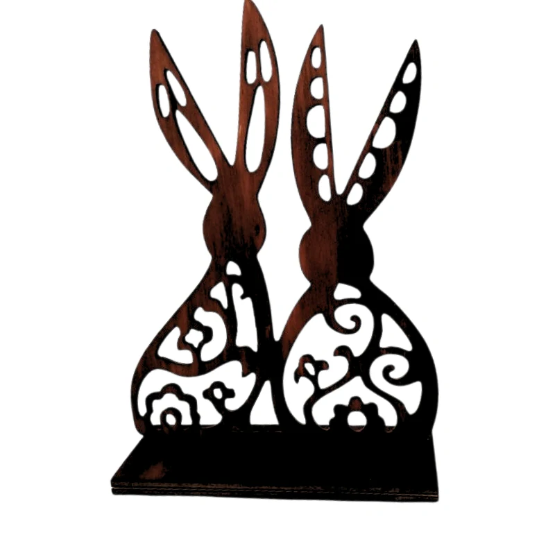 Dekorace je vyrobená z kvalitní překližky, laserovaná a následně ručně broušená, aby se odstranily opaly po laserování. Jemné filigránové vzory dodávají zajícům elegantní a vzdušný vzhled.